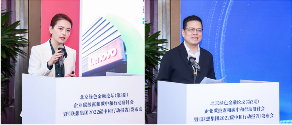 联想集团ESG与可持续发展总监、联想中国平台社会价值委员会秘书长王旋与北京绿色金融协会副会长、中碳科技董事长马险峰为现场嘉宾与媒体详细解读了该《报告》。