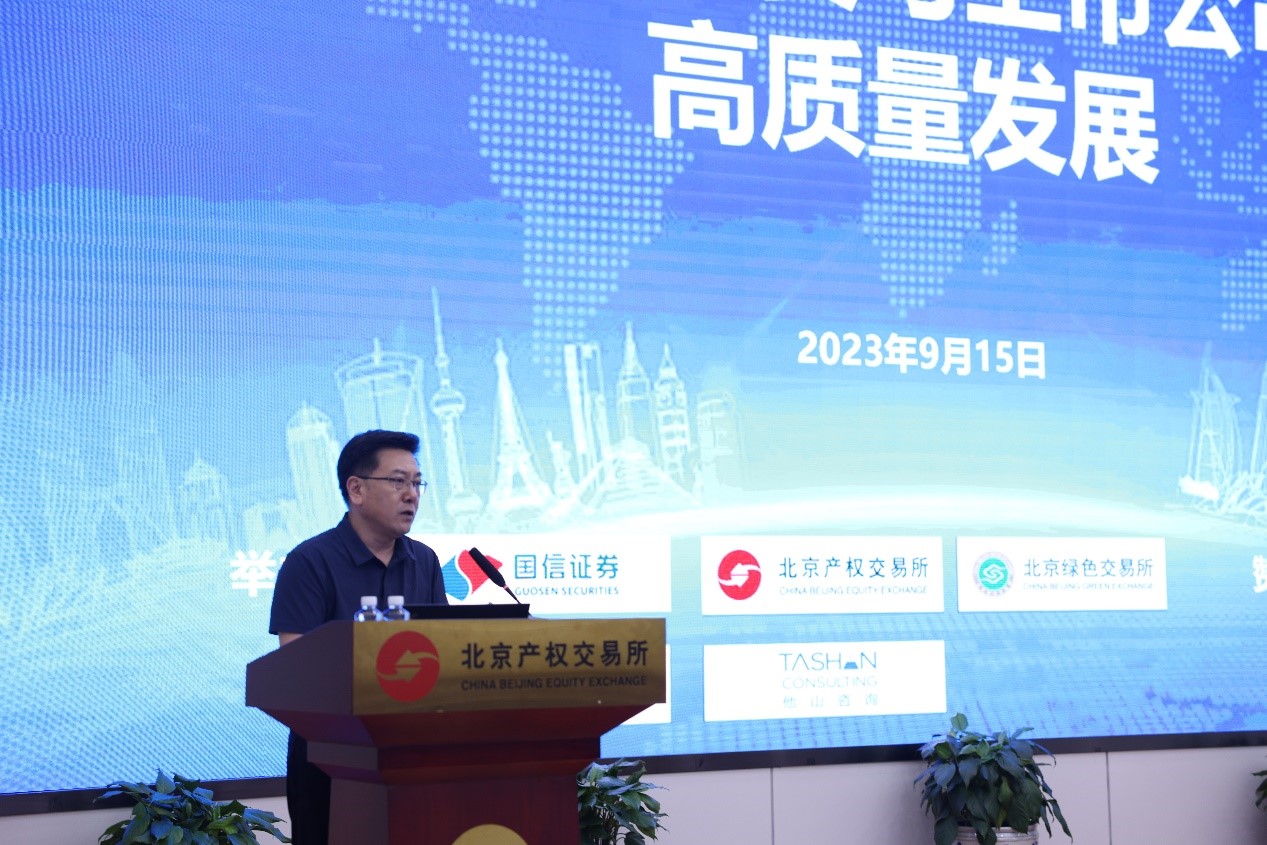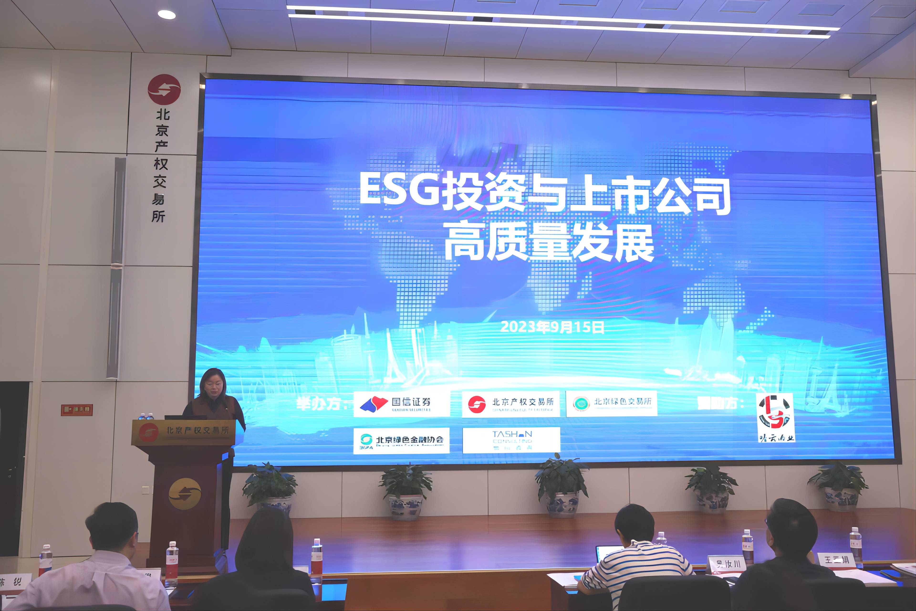 近日,“ESG投资与上市公司高质量发展”论坛在北京产权交易所举行。本次论坛由北京绿色金融协会、北京产权交易所、北京绿色交易所、国信证券股份有限公司、他山企业管理咨询有限公司共同主办。70余家上市公司、投资机构以及专业服务机构应邀出席论坛。